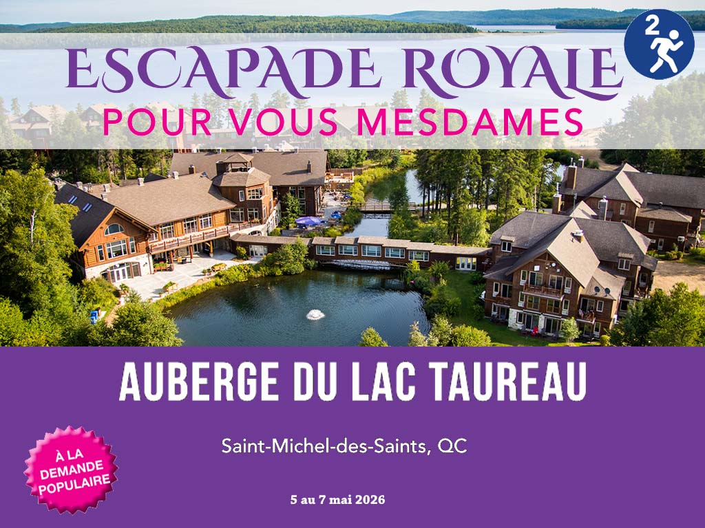 À la demande générale suite au succès de ce forfait en 2024, Voyages Rockland invite encore toutes ses clientes à retourner à l’Auberge du Lac Taureau pour notre escapade royale ! Imaginez : trois jours à vous faire dorloter, trois jours de détente, trois jours à savourer des repas soigneusement sélectionnés ! Le prix comprend d’excellents repas, un service de soins corporels et l’accès illimité au spa de l’hôtel.