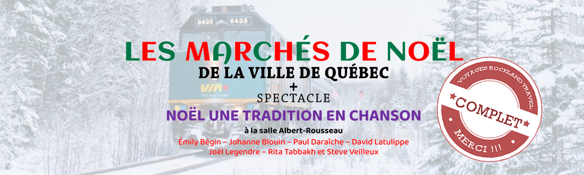 À la demande populaire, Voyages Rockland vous revient avec son forfait excitant et enchanteur pour célébrer la fête de Noël dans la Ville de Québec ! Nous ferons le trajet de l’aller vers la Vieille Capitale en train, une randonnée toujours plaisante à bord de VIA Rail ! Afin d’agrémenter notre voyage, nous séjournerons dans un bel hôtel du Vieux-Québec situé à quelques pas des Marchés de Noël, sans oublier toute la frénésie et l’animation du Vieux-Québec.